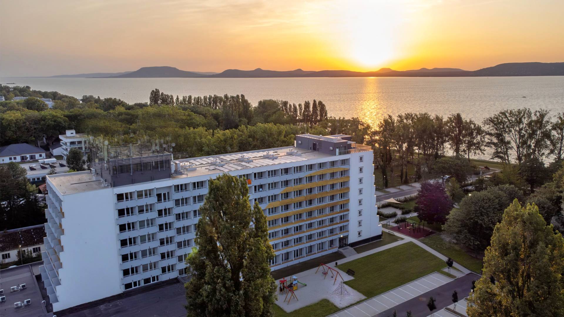 The 3-star Lelle Hotel, the venue for the District conference, welcomes guests with 110 rooms. The fully renovated building features a modern, clean style, and its air-conditioned rooms are ideal for both couples and families. Lake Balaton and the public beach are just a few steps away from the hotel garden. Children can enjoy indoor and outdoor play areas, while adults can use the fitness room, table tennis, and various sports courts for active relaxation.